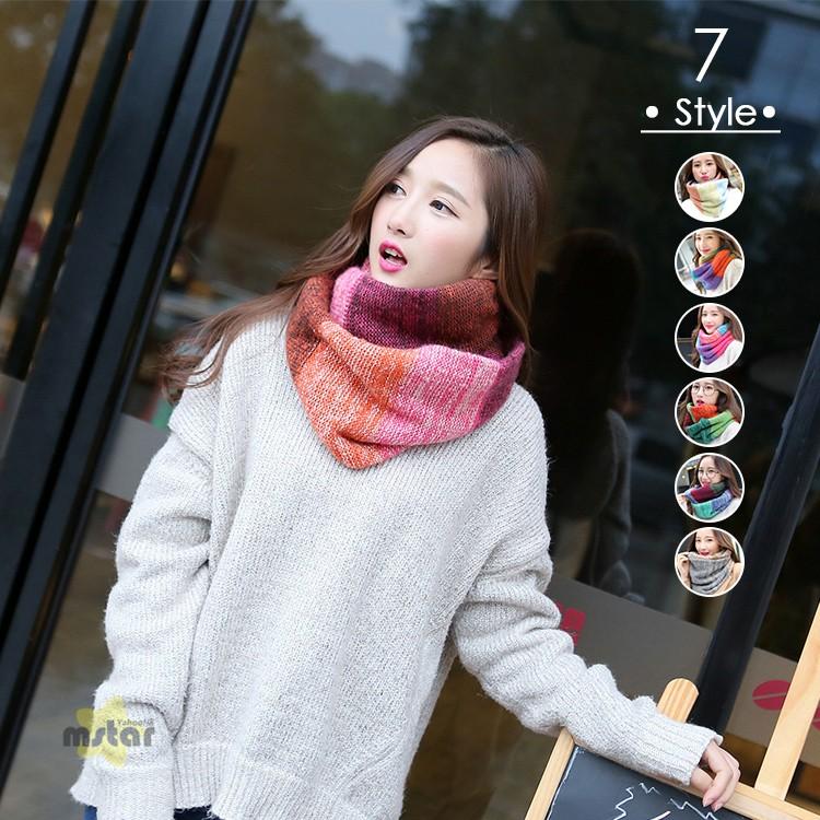 スヌード レディース マフラー ニット 配色切り替え 虹色 かわいい あったか ネックウォーマー 冬物 小物 防寒 Pf Mstar Yahoo 店 通販 Yahoo ショッピング